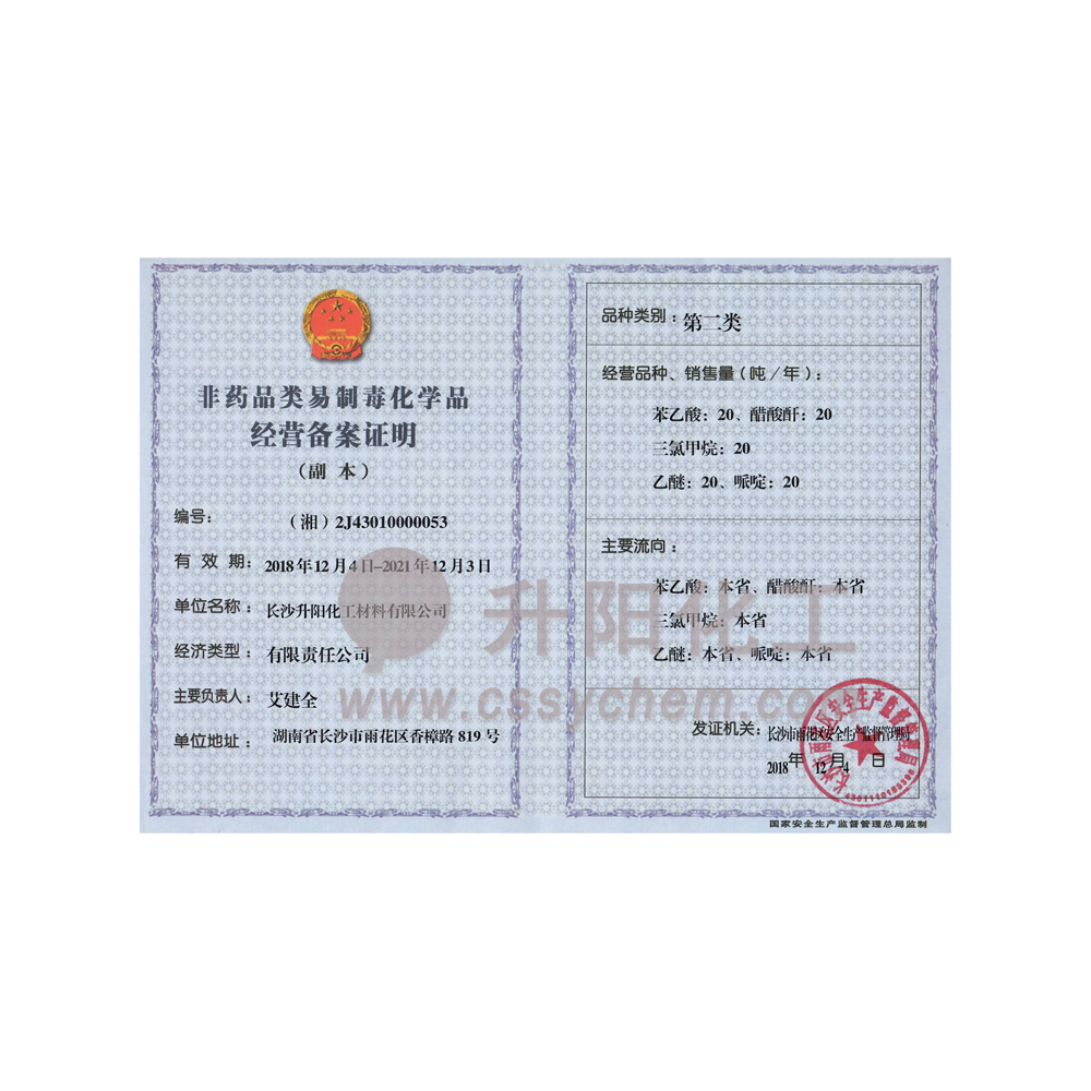 長沙升陽化工材料有限公司成立于2009年,是一家已經(jīng)擁有10年化工原料經(jīng)營歷史的企業(yè)。我們本著“服務(wù)至上,以誠為本”的原則,為廣大的新老客戶提供最優(yōu)質(zhì)的產(chǎn)品、最便捷的服務(wù)。歷經(jīng)10多年的積淀與發(fā)展,現(xiàn)已成長為湖南省頗具規(guī)模的專業(yè)化學(xué)品服務(wù)供應(yīng)商之一。?公司集貿(mào)易,科研,倉儲,物流為